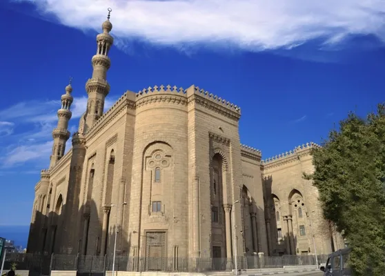 Another impressive Islamic monument in Cairo is the Al Refaie Mosque which was founded by Khoshiar Hanim, the mother of Khedive Ismail. The process of construction had begun in 1869 AD and was completed by 1911 AD. However, the works of its erection stopped for around 25 years from 1880 to 1905 AD. The mosque served as the burial tombs of Mohamed Ali's family members.